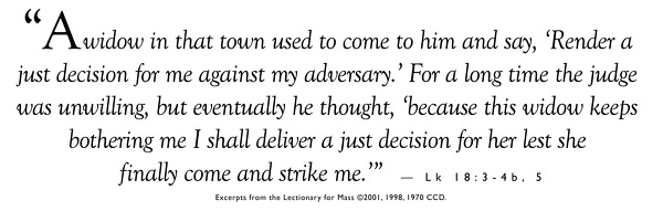 - Sunday: Ex 17:8-13 / Ps 121:1-2, 3-4, 5-6, 7-8 (see 2) / 2 Tm 3:14—4:2 / Lk 18:1-8