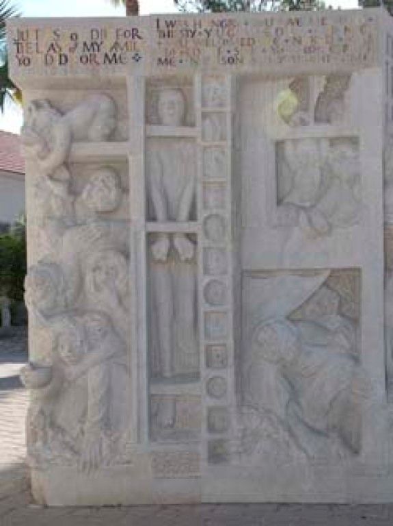 Christ The King sculpture in the courtyard depicting Christ’s ministry.