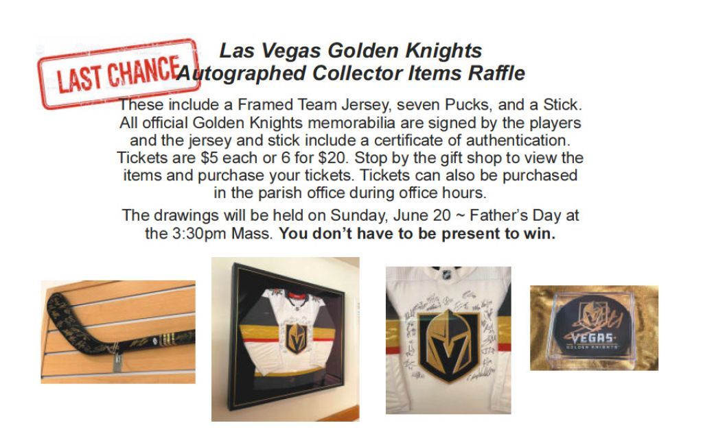 Tickets are available for purchase before and after all Masses, Sunday 6/20